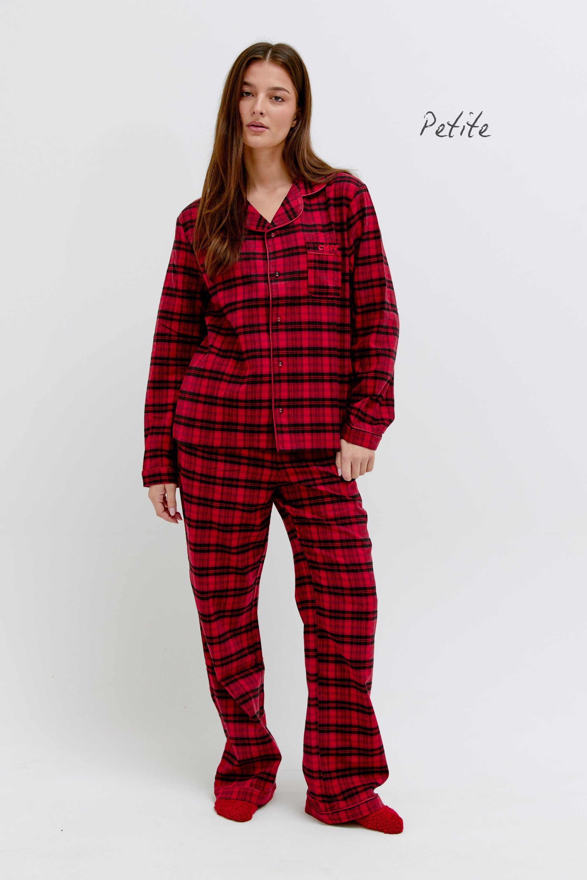 They are 95% cotton and 5% spandex. The best combination for a breathable, comfortable, flattering fit.